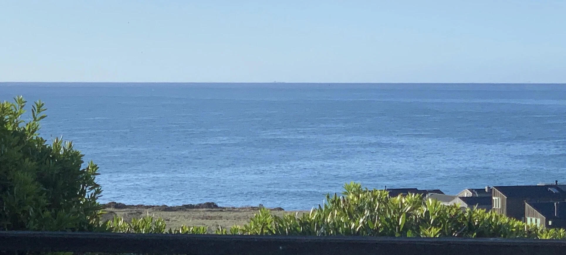 "Bella Vista" (red marker) is located on a knoll, significantly above all homes between it and the ocean and looks over the rooftops of some well-screened homes. (The map gives a totally inadequate impression of this because it does not convey elevation contours). The view of Leeward Road is blocked by topography, the houses at Starboard and Wild Sweep are significantly below and mostly blocked by vegetation; the houses along Helm and Del Mar are behind cypress trees, and the houses near the bluff are not impeding the expansive ocean vistas. See Photos taken from the Bluff Trail.